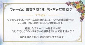 ファームの四季を楽しむ ちっちゃな音楽会のお知らせ